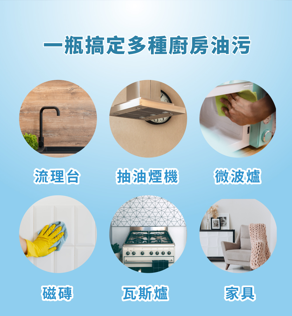 強效去污抗菌配方、消除異味,隨手清潔廚房、簡單不費力
