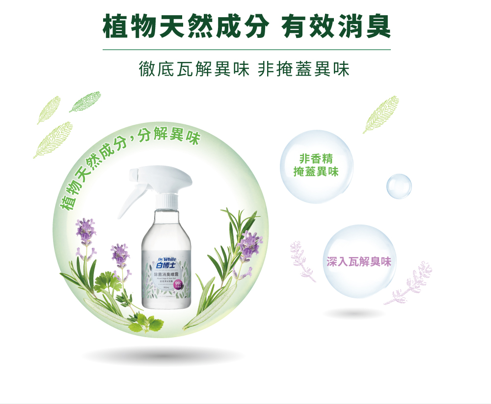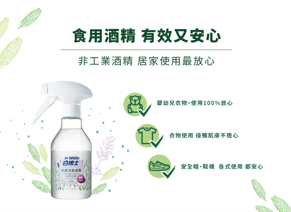 天然又安全:植物性消臭成分,有效消除多種異臭味,非以香精掩蓋臭味,不傷害衣物、寢具、鞋襪材質。